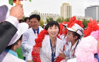 仁川アジア大会で快挙を成し遂げた選手たち。平壌市内の沿道で大歓迎を受けて記者会見場の平壌体育館に到着すると、市民たちから花束の嵐が待っていた。花輪を贈られた卓球・男女混合ダブルス金メダルのキム・ジョン … 続きを読む 〈ピョンヤン笑顔の瞬間 48〉花束の嵐