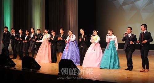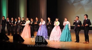 公演を祝うため各地から駆けつけた朝鮮歌舞団団員たちが、共にステージにあがり合唱した_R