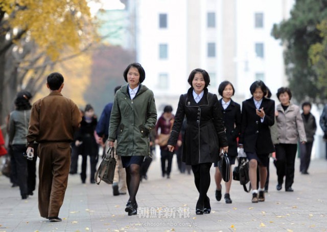 〈ピョンヤン笑顔の瞬間 78〉晩秋の気配漂う街を歩く人々