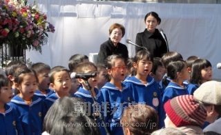 戦争の悲惨さ「忘れじの集い」/東京・上野公園 東京第1初中・幼稚班園児らが献歌