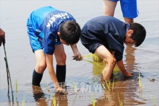 栃木の小さな「青山里(チョンサルリ)」 初夏の照りつける日差しの下、果てしなく広がる田んぼの脇にやってきたのは栃木初中の児童・生徒たち。初級部1年生から中級部3年生まで、全校生は11人。 同校では約1 … 続きを読む 〈発掘!ウリハッキョ自慢 2〉田植え体験授業/栃木初中