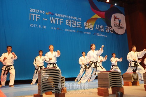 北が主導する国際テコンドー連盟(ITF)の演武団が、南主導の世界テコンドー連盟(WTF)の大会に参加し、公演を披露した。