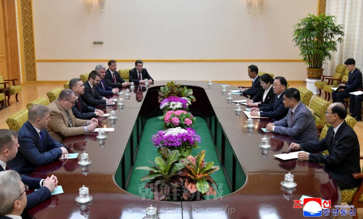 朝鮮中央通信によると、朝鮮職業総同盟中央委員会のリ・ウォンジョン委員長とロシアの無所属職業同盟連盟のセルゲイ・チェルノガエフ委員長との会談(写真、朝鮮中央通信=朝鮮通信)が14日、平壌議事堂で行われた…