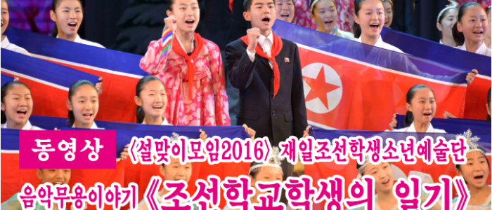 재일조선학생소년예술단이 2016년 1월 1일 평양의 만경대학생소년궁전에서 진행된 《학생소년들의 2016년 설맞이공연 〈세상에 부럼없어라〉》에 출연하여 음악무용이야기《조선학교학생의 … 続きを読む 【동영상】〈설맞이모임2016〉음악무용이야기《조선학교학생의 일기》