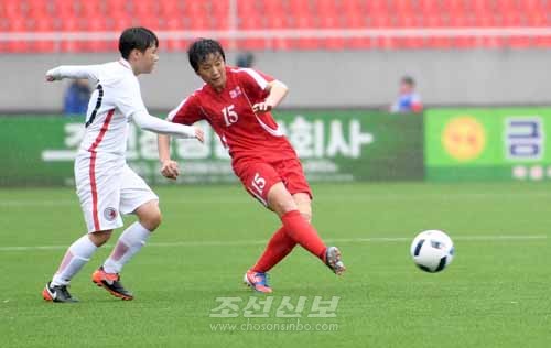 후반전에서도 조선팀이 공격을 들이대고 주도권을 잡았으며 72분경 최은주선수가 득점하였다.