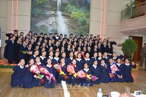 전날인 12일 저녁, 숙소인 평양호텔에서 학생들을 위한 송별모임이 진행되였다. 모임에서는 호텔종업원들의 공연이 있었다.