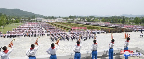 조선소년단 전국련합단체대회가 금수산태양궁전광장에서 진행되였다.(조선중앙통신)