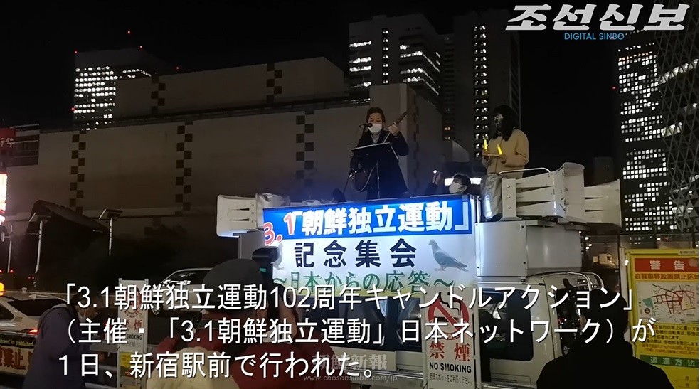 《3.1 조선독립운동 102돐 초불집회》(주최- 3.1조선독립운동 일본네트워크)가 1일 東京 新宿駅앞에서 진행되였다. 집회에는 동포, 일본시민들 약 150명이 참가하였다. 참가자들은 《평화를 파괴하고 남북관계를 파탄시키는 합동군사연습을 중지하라!》《조선학교에 고교무상화 적용을!》 등의 프랑카드와 초불을 들면서 일본의 식민주의의 청산, 동북아시아의 비핵화와 평화실현을 호소하였다.