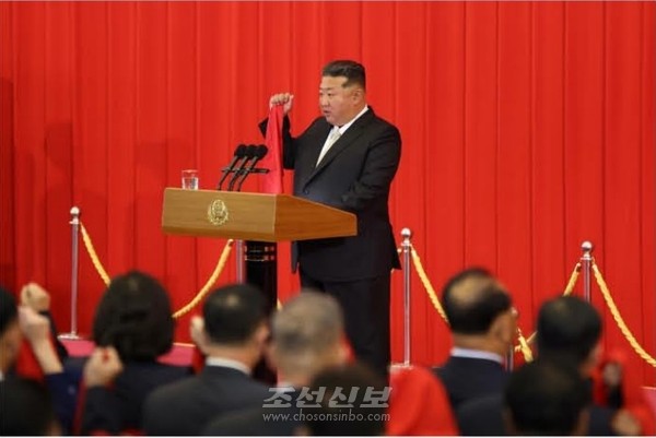 김정은동지께서 연설을 마치시자 우렁찬 《만세!》의 환호성이 장내를 진감하며 터져올랐다.