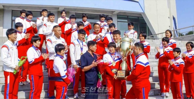 세계레스링선수권대회에서 금메달을 쟁취하고 녀자단체컵을 수여받았다.