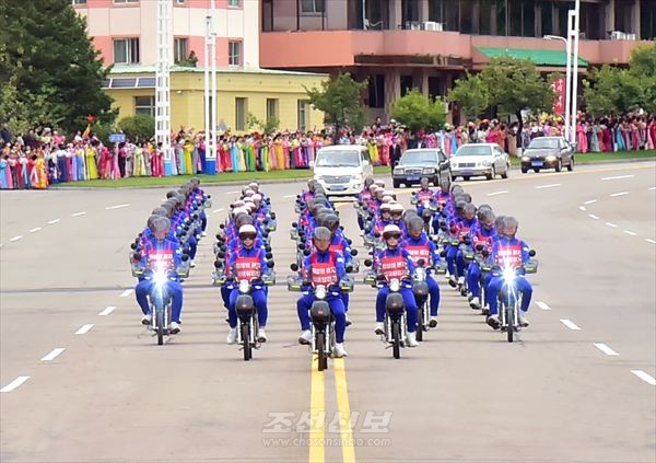 연도에서 박수와 환호를 보내는 평양시민들의 뜨거운 환영속에 시내를 질주하였다.