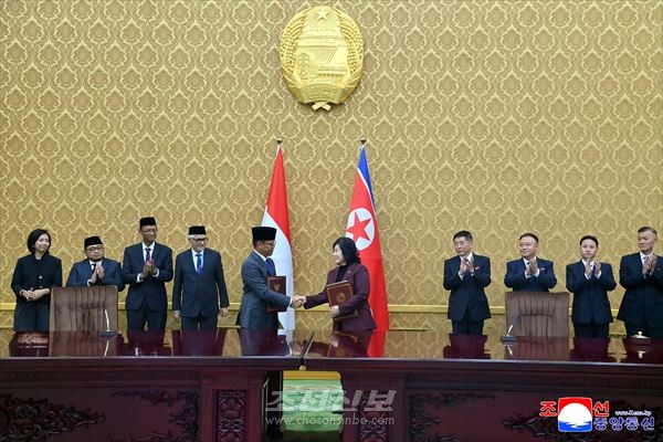 회담에 이어 조선민주주의인민공화국정부와 인도네시아공화국정부사이의 쌍무협상제도수립에 관한 량해문이 조인되였다. (조선중앙통신)