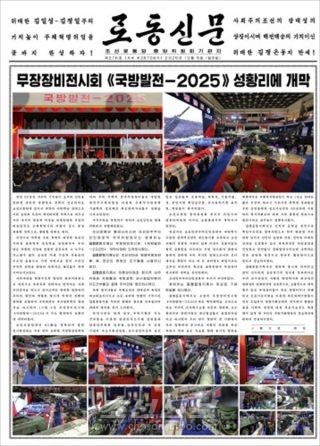 -무장장비전시회 《국방발전-2025》가 성황리에 개막된 소식(3면으로 계속)과 사진문헌들