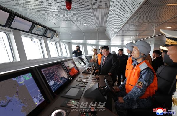 김정은원수님께서 무장장비전시회 《국방발전-2025》 2일 참관일정에 따라 구축함 《최현》호를 돌아보시였다