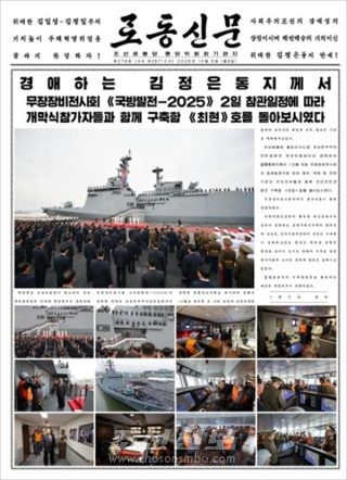 -경애하는 김정은동지께서 무장장비전시회 《국방발전-2025》 2일 참관일정에 따라 개막식참가자들과 함께 구축함 《최현》호를 돌아보신 소식과 사진문헌들