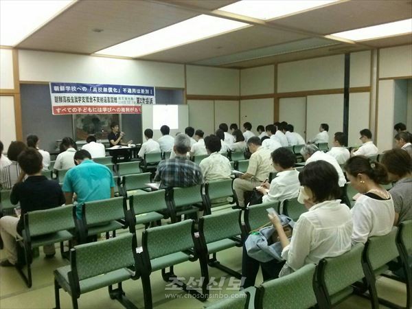2010년, 일본정부는 고등학교무상화제도를 실시하였다. 우리 학교들은 《심사중》으로 된 후 2012년에 아베(安倍)정권에 의하여 부당하게 성령(省令)이 개정되여 완전히 제외되였다.