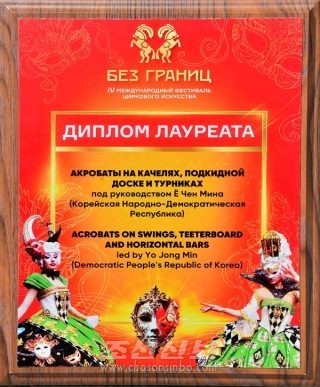 시상식에서는 조선의 교예작품에 축전최고상인 그랜드상과 특별상이 수여되였다.