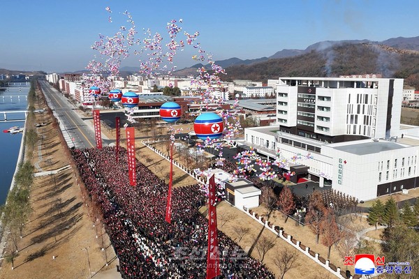 새시대 국가건설사에 특기할 력사의 화폭이 펼쳐진 준공식장에 꽃보라가 흩날리고 수많은 고무풍선들이 날아올랐다.