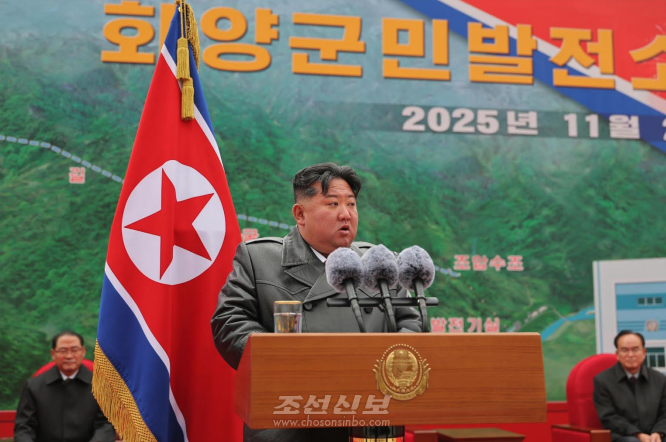 김정은동지께서는 력사에 반드시 승리의 해로 기록되여야 할 2025년의 빛나는 결속을 위하여 온 나라가 격동하고있는 시기에 회양군민발전소가 준공하게 된것은 정말로 경사스러운 일이라고 하시면서 군대와 인민이 힘을 합쳐 조국을 수호한 력사의 자취가 력력한 강원땅의 곳곳에 일떠선 발전소들은 피로써 지켜낸 이 귀중한 터전을 더 굳건하고 아름답게 가꾸어가려는 군민의 마음이 함께 쌓아올린 사회주의신념의 성새이라고 말씀하시였다.