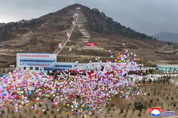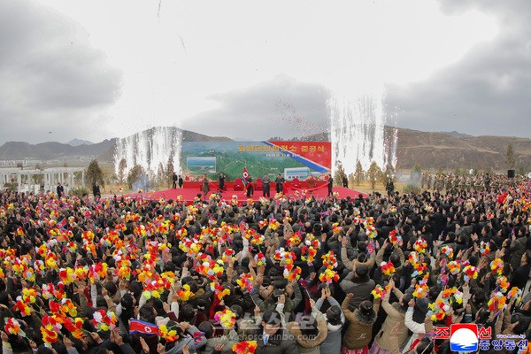 자력갱생의 장엄한 진군려정에 길이 빛날 불멸의 화폭이 펼쳐진 준공식장에 축포가 터져오르고 수많은 고무풍선들이 날아올라 11월의 하늘을 환희롭게 장식하였다.