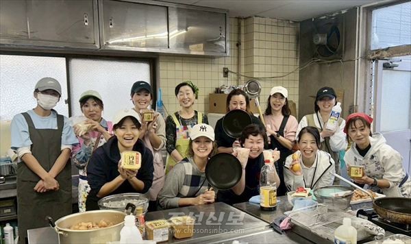 급식을 마련한 녀성동맹 오끼노분회 동포들