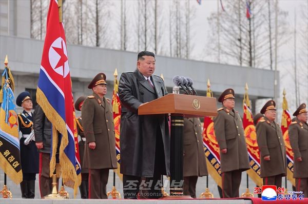 김정은동지께서는 조국앞에 언제나 충실한 관병들의 헌신적복무에 감사와 숭고한 경의를 드린다고 하시면서 연설을 마치시였다.