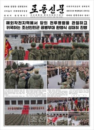 -해외작전지역에서 당의 전투명령을 관철하고 귀국하는 조선인민군 공병부대 환영식이 성대히 진행된 소식과 사진문헌들