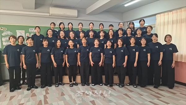 합창부문 금상을 받은 기다오사까초급 어머니회 합창단