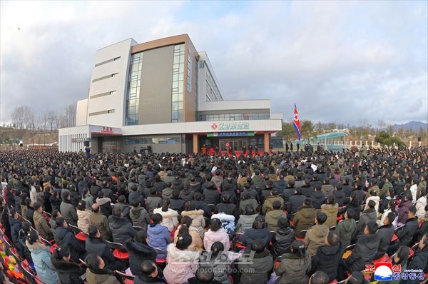 새시대 보건혁명수행의 줄기찬 행로에 특기할 불멸의 화폭이 펼쳐진 준공식장에 축포가 터져오르고 수많은 고무풍선들이 날아올라 의의깊은 12월의 하늘을 아름답게 장식하였다.