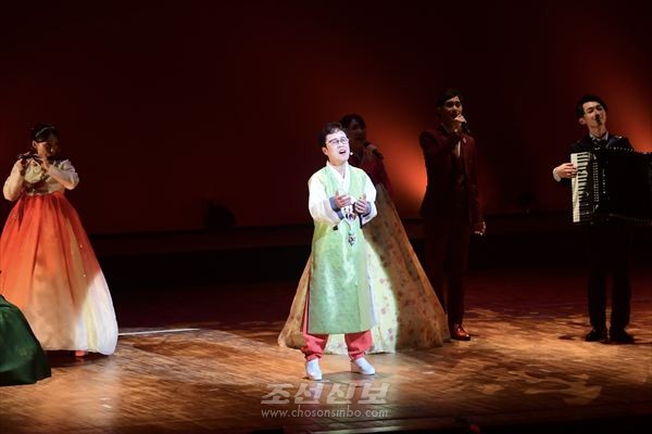 《우리》의 자랑을, 《우리》의 긍지를 안고 동포들과 더불어 걸어온 장장 60년을 형상한 무대에서 그대들이 부른것은 말그대로 공연기본종자인 《조국과 더불어 동포들과 함께》, 《감사와 결심, 미래에로의 도전》이였다.