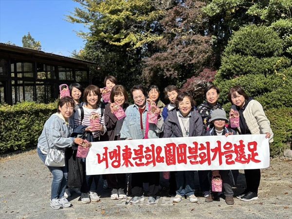 녀성동맹효고 아마가사끼동(尼崎東)지부 동(東)분회와 소노다(園田)분회합동 가을원족이 11월 8일에 진행되였다. 여기에 40대로부터 70대까지의 동포녀성들 12명이 참가하였다.
