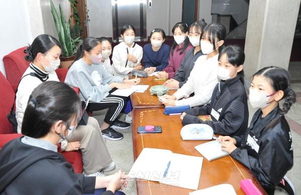 【평양발 김숙미기자】매일 20시가 되면 평양호텔 매층의 곳곳에서는 재일조선학생소년예술단의 각 분단이 모여앉아 하루총화를 진행한다.
