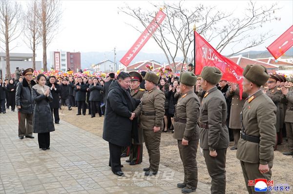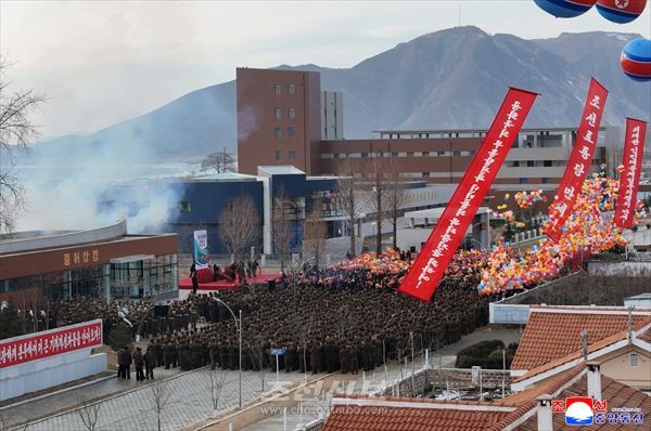 김정은동지께서 준공식장에 도착하시자 전체 참가자들은 인민의 모든 꿈과 리상을 당대의 현실로 꽃피워주시는 온 나라 대가정의 위대하신 어버이를 또다시 자기 고장에 모시게 된 크나큰 감격과 환희에 넘쳐 폭풍같은 《만세!》의 함성을 터쳐올리였다.