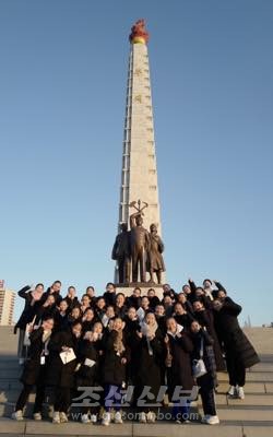 【평양발 김숙미, 전기일기자】제35차 재일조선학생소년예술단이 22일 주체사상탑과 개선문을 참관하였다.