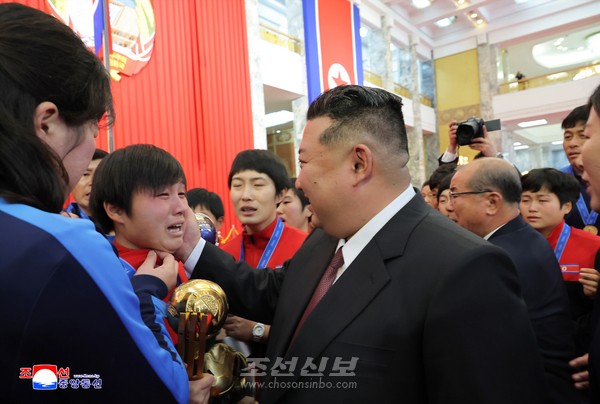 김정은동지께서는 이날 국제축구련맹 2025년 17살미만 녀자월드컵경기대회에서 영예의 1위를 쟁취한 녀자축구선수들과 감독들을 만나시고 앞으로의 훌륭한 경기성과를 축복해주시면서 그들을 한품에 안으시고 뜻깊은 사랑의 화폭을 남기시였다.