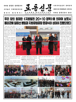 -우리 당의 원대한 《지방발전 20×10 정책》에 의하여 남포시 룡강군에 일떠선 병원과 지방공업공장 준공식이 성대히 진행된 소식과 사진문헌들 (3면으로 계속)
