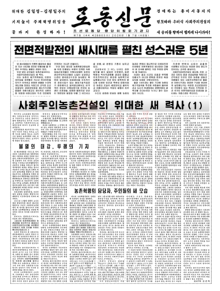 -《전면적발전의 새시대를 펼친 성스러운 5년》이라는 표제아래 사회주의농촌건설의 위대한 새 력사가 펼쳐진데 대해 쓴 련재글