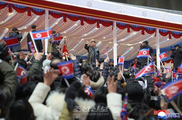김정은동지께서는 군중들의 열광의 환호에 손저어 답례하시며 사랑하는 온 나라 인민들에게 따뜻한 인사를 보내시였다.