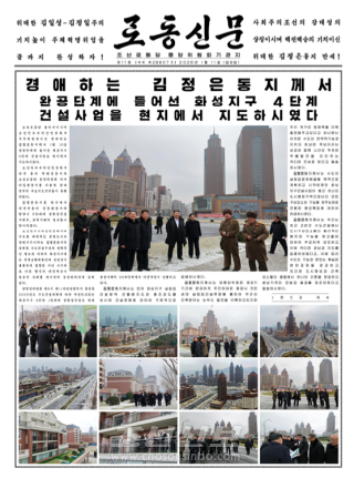 -경애하는 김정은동지께서 완공단계에 들어선 화성지구 4단계 건설사업을 현지에서 지도하신 소식과 사진문헌들(2면으로 계속)