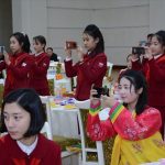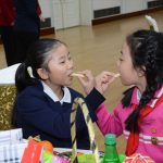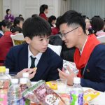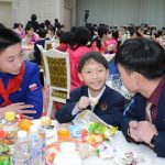 총련과 조국의 련계학교 학생들은 한식탁에 모여앉아 서로 다과를 나누어먹고 사진도 찍으며 혈육의 정을 두터이 하였다.