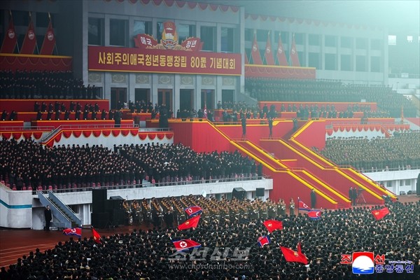 사회주의애국청년동맹창립 80돐 기념대회가 1월 16일 수도 평양의 김일성경기장에서 성대히 진행되였다.