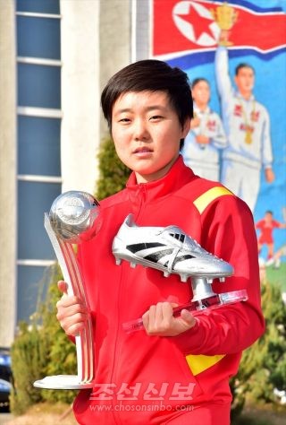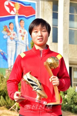 이번 대회에서 은뽈상과 은축구화상을 수여받은 김원심선수는 평양국제축구학교 학생이다.
