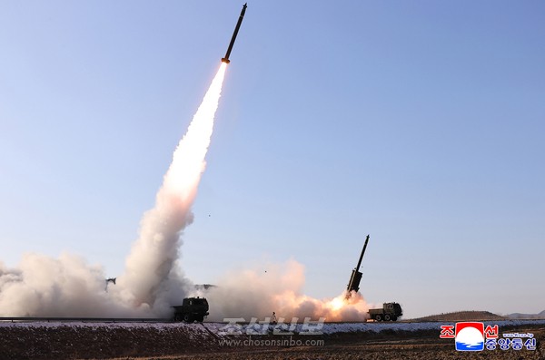 조선민주주의인민공화국 미싸일총국 대구경방사포무기체계시험사격 진행