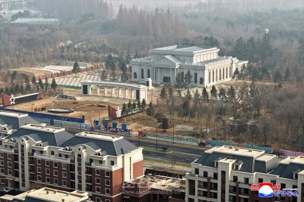 김정은동지께서는 기념관건설장을 돌아보시면서 공사실태와 조각창작 및 설치정형을 구체적으로 료해하시였다.