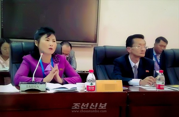 2018년 중국 연변대학에서 진행된 국제학술토론회에서 론문을 발표하는 강분이연구사