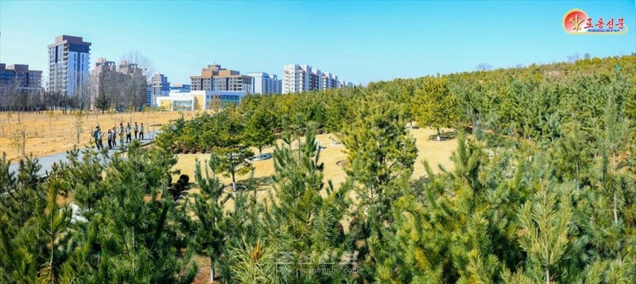 김정은원수님의 애국의 세계를 전하며 푸르러 설레이는 두그루의 전나무가 있는 사연깊은 화성산이 한해가 다르게 무성해지고있다.