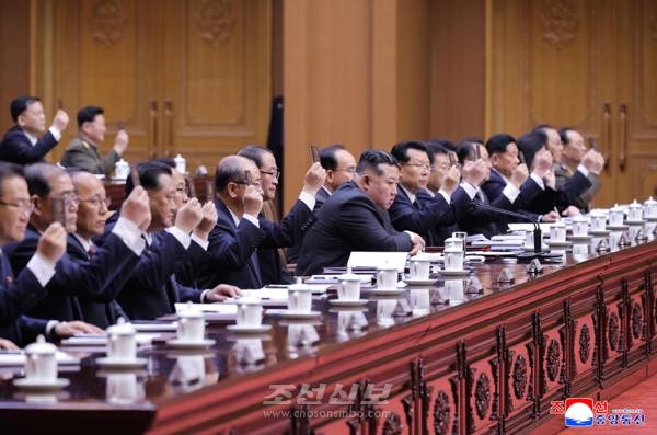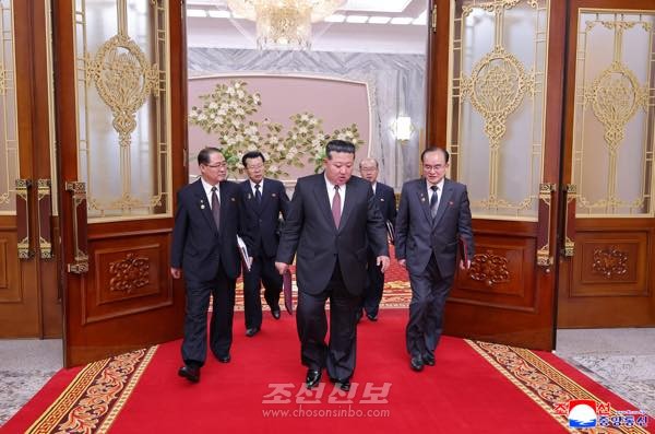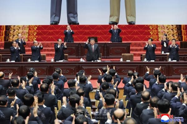 김정은동지께서 회의장에 나오시자 전체 참가자들은 위대한 사상과 걸출한 정치실력으로 우리 국가의 절대적존엄과 국력을 세기의 절정에 올려세우시고 인민의 리상과 무궁한 행복이 전면적으로 실현되는 거창한 번영의 새시대를 펼쳐주신 희세의 천출위인,인민의 령도자를 열광적인 박수로 맞이하였다.