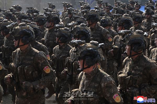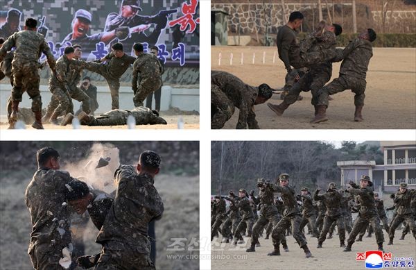훈련기지는 국가와 인민의 안녕수호를 위한 군력강화의 화선길을 쉬임없이 걷고걸으시는 김정은동지께 최강의 전투력시위로 기쁨과 만족을 드릴 불같은 일념에 넘쳐있는 특수작전구분대 전투원들의 충천한 기세로 끓어번지고있었다.
