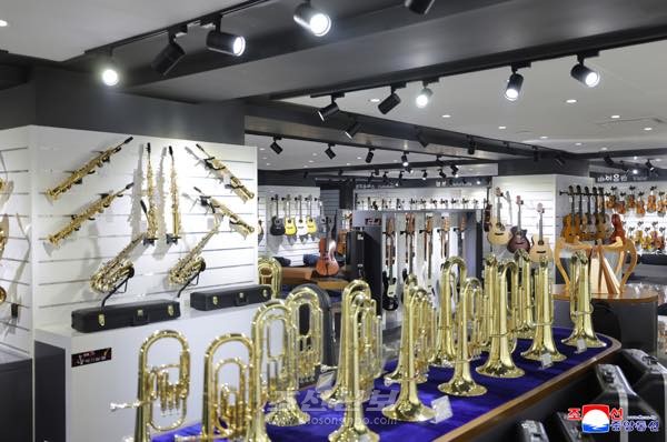 김정은동지께서는 음악애호가들과 학생들,전문연주가들을 위한 년령별,종류별에 따르는 악기들과 다양한 소모품들을 갖추어놓고 진렬방법도 새롭게 혁신하여 봉사의 편리성을 보장할수 있게 한것은 평가할만한 일이라고 말씀하시였다.
