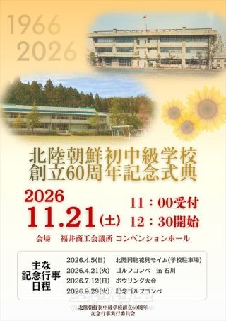 앞으로 각종 기념행사들을 거쳐 11월 21일에는 호꾸리꾸초중창립 60돐기념식전이 후꾸이현내 시설에서 진행될 예정이다.